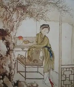 Qingwen, pictură de Xu Baozhuan - Yuanyang - Servitoarea principală a Văduvei. Refuză cererea în căsătorie (în calitate de concubină) din partea desfrânatului Jia She, fiul mai mare al bunicii Jia, și se sinucide imediat după moartea Văduvei.