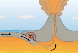 Globul terestru are mai multe straturi. Profunzimea fiecărui strat geologic este determinată de greutatea specifică a rocilor componente. Astfel în centru (miezul Terrei) se găsesc cele mai grele elemente care, prin procese fizico-chimice exoterme, ajung la temperaturi foarte ridicate (mii de grade Celsius), fapt ce determină topirea rocilor cu formare de gaze. Acest fenomen cauzează presiuni deosebit de mari, gazele cautând sa străpungă straturile de la suprafața Pământului. Rocile vecine magmei suferă procese de transformare, fiind numite roci metamorfice.