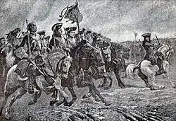 ![]() Filip al V-lea al Spaniei și ducele de Vendôme în fruntea șarjei franco-spaniole la bătălia de la Villaviciosa; pictură de Jean Alaux (1840). | |||||||||