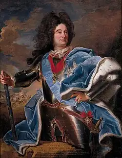 - ↑ Lynn, The Wars of Louis XIV: 1667–1714 [Războaiele lui Ludovic al XIV-lea: 1667–1714], p.271. Deși pe hârtie erau mai mulți, forța armatei franceze era de circa 255.000. La început, la aceștia se mai adăugau contingentele bavareze și savoiarde