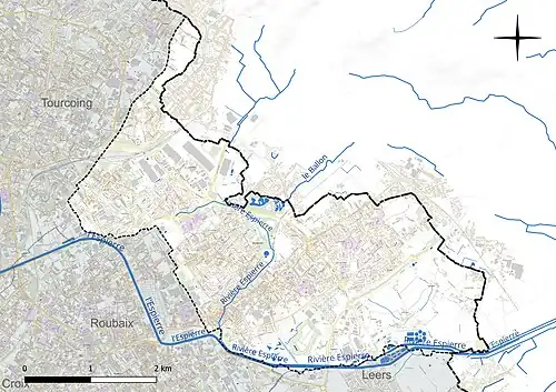 Canalul Roubaix mărginește comuna la sud, iar o linie de cale ferată care leagă Tourcoing de Mouscron o traversează la nord.