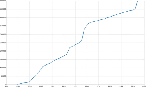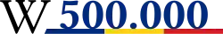 Logotip al Wikipediei în limba română, afișat la atingerea pragului de 500.000 de articole.