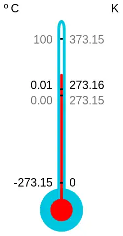 Temperatura de 0 K corespunde la scara Celsius temperaturii de −273,15 °C, iar la scara Fahrenheit la −459,67 °F.[1]