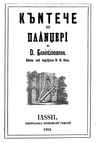 Prima pagină a volumui de poezii Cântece şi plângeri (1852)