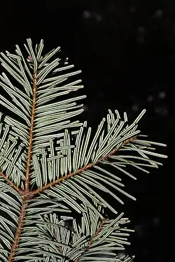 Abies grandis subsp. grandis (underside of shoot), Anacortes, near Seattle, Washington, USA