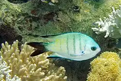 - Tang, K.L. 2001: Phylogenetic relationships among damselfishes (Teleostei: Pomacentridae) as determined by mitochondrial DNA data. Copeia, 2001 (3): 591–601.