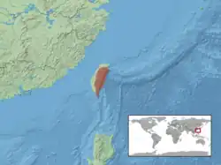 - Type locality: "Mt Arisan, Central Formosa" (= Mt Ali, ext. S. Nantou Co., central Taiwan ca. 23°35'N, 120°49'E, ca. 2000 m.)
