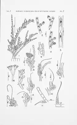 - Dawson, E.Y. 1953. Marine red algae of Pacific Mexico. Part 1. Bangiales to Corallinaceae subf. Corallinoidae. Allan Hancock Pacific Expeditions 17(1): 1–239, Plates 1–33. Online BHL Reference page. : 32, pl. 2: figs 2-5