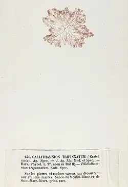 - Feldmann-Mazoyer, G. 1941 '1940'. Recherches sur les Céramiacées de la Mediterranée occidentale. pp. 1–510, 191 figs, pls I–IV. Alger: Imprimerie Minerva 5, Rue Clauzel. Reference page. : 464, fig. 184