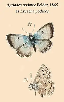 - Lycaena podarce Felder & Felder, 1865: 282, pl. 35, figs 22,23.