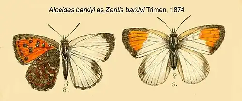 - Zeritis barklyi Trimen, 1874: 338, pl. 2, figs 8-9; .