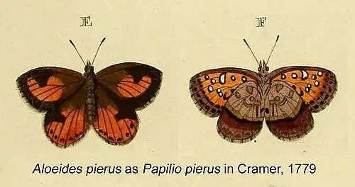 - Aloeides pierus (Cramer); Stempffer, 1967: 176; Tite & Dickson, 1975: 259; Henning, 1993: 147.