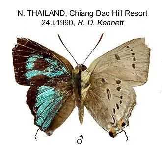 - Pinratana, A., 1981. Butterflies in Thailand, Vol. 4, Lycaenidae.Viratham Press, Bangkok. Reference page.