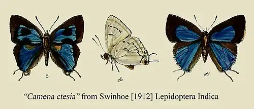 - Camena ctesia Hewitson, 1865: 48, pl. 20, figs 1-2; Moore, [1866]: 775; de Nicéville, 1882: 63; Moore, 1884: 530; Elwes, 1888: 394, pl. 8, fig. 6 ♀; Swinhoe, 1893: 302; Fruhstorfer, 1912: 207.