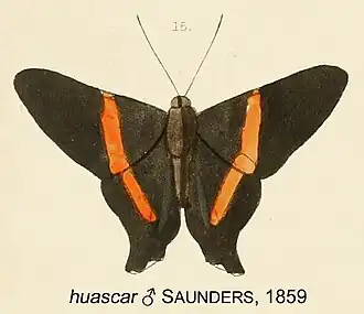 - Ancyluris huascar (Saunders); Kirby, 1871: 303; Bridges, 1994: 212.