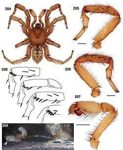 - Aptostichus cahuilla Bond, 2012: figs. 204โ209 maps 23, 24