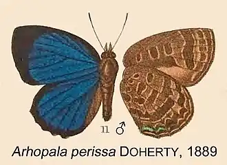 - Arhopala perissa Doherty, 1889: 419, pl.23, fig. 11.