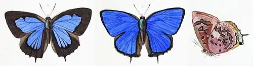 - Hewitson, W. C., 1862. Specimen of a Catalogue of Lycaenidae in the British Museum. London, British Museum. 15pp, 8 pls. BHL text, plates. Reference page.