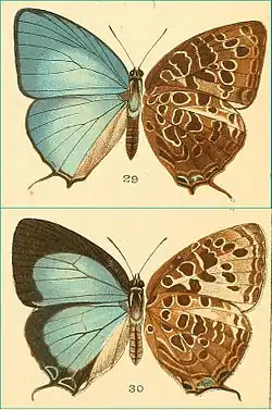 - Amblypodia auzea de Nicéville, 1869: 169, pl.S, figs 29,30.