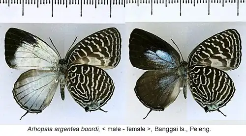 Arhopala argentea boordi Tennent & Rawlins, 2010.