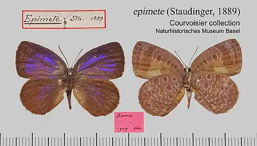 - Amblypodia epimete Staudinger, 1889: 128, pl.2 fig.2.