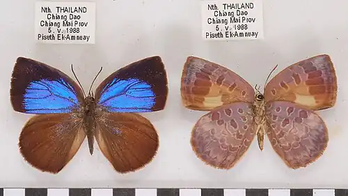 - Pinratana, A., 1981. Butterflies in Thailand, Vol. 4, Lycaenidae.Viratham Press, Bangkok. Reference page.