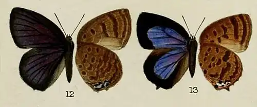 - Bethune-Baker, G.T., 1896. In Druce: Further contributions to our knowledge of the Bornean Lycaenidae. Proc. Zool. Soc. Lond. 1896(3): 650-683, 3 pls. BHL text, plates. Reference page. DOI: 10.1111/j.1096-3642.1896.tb03073.x