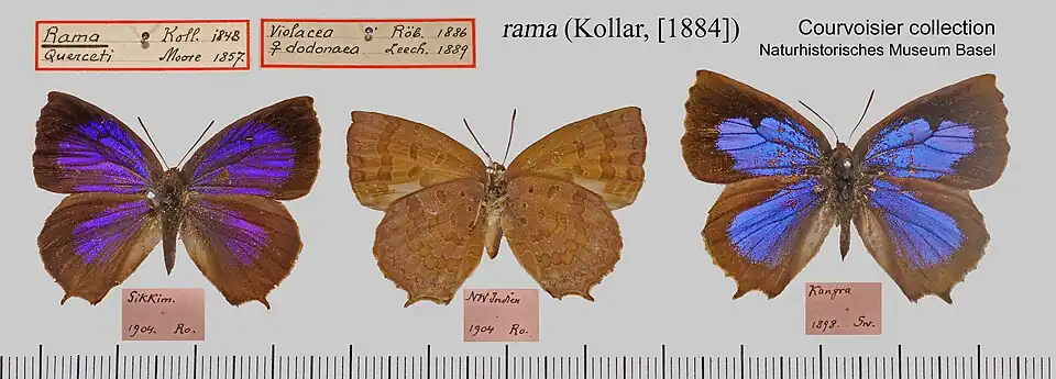- Thecla rama Kollar, 1842: 412, pl.4 figs 1,2.