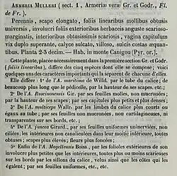 Description of Armeria muelleri in 1853 by Alfred Huet du Pavillon.