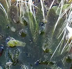 - Valet, G. 1969. Contribution à l'étude des Dasycladales. 2. Cytologie et reproduction. 3. Révision systématique. Nova Hedwigia 17: 551–644. Reference page.