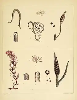 - Montagne, C. 1852. Diagnoses phycologicae seu quibus caracteribus discriminandae sunt species Lichenum Algarumque nonnullae novae, in tomo Florae Chilensis octavo nondum typis mandato descriptae. Annales des Sciences Naturelle, Botanique, Ser. 3, 18: 302–319. BHL Reference page. : 317