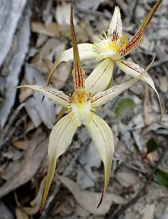 - Formula hybridae: Caladenia flava R.Br. (1810) × Caladenia longicauda Lindl. (1839)