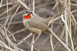 - Calliope lathamii Gould, 1836, = Motacilla calliope Pallas, 1776, = Calliope calliope