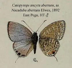 Catopyrops ancyra aberrans (Elwes, 1892).