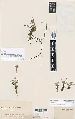 - Tropicos.org 2023. Celmisia alpina. Missouri Botanical Garden. Published online. Accessed: 29 January 2023.