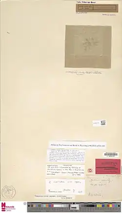 • Type locality: Wagap, New Caledonia. Holotype: Vieillard # 2104; L 941,11-84 (barcode L 0055781).