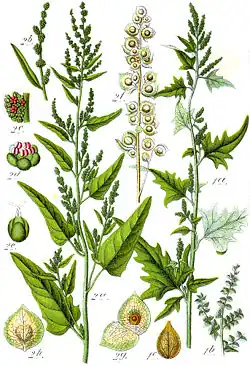 - Fuentes-Bazan, S., Uotila, P. & Borsch, T. 2012. A novel phylogeny-based generic classification for Chenopodium sensu lato, and a tribal rearrangement of Chenopodioideae (Chenopodiaceae). Willdenowia 42(1): 5–24. DOI: 10.3372/wi42.42101 Full text PDF Reference page.