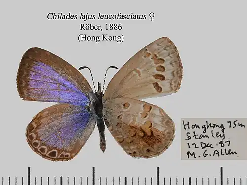 Chilades lajus leucofasciatus (Röber, 1886).
