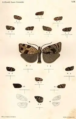 - Hübner, 1796-1799, Samml. Eur. Schmett. 7: pl. 17fig. 105.