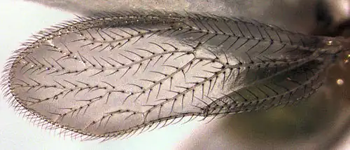 Chorocaecilius brunellus (forewing, length about 2.3 mm)