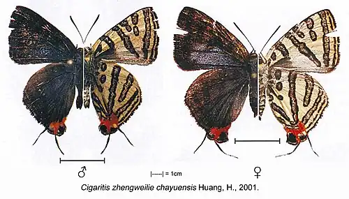 Cigaritis zhengweilie chayuensis Huang, H., 2001.