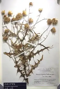 Cirsium nagisoense Kadota, Bull. Natl. Mus. Nat. Sci., Tokyo, B. 35: 44 (2009).