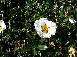 - Formula hybridae: Cistus inflatus Pourr. ex Demoly × Cistus ladanifer L.