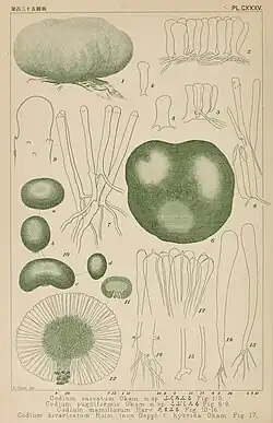 - [Okamura, K.] 1914. On the distribution of Codium. Botanical Magazine, Tokyo 28(325): 1–5. [in Japanese]. BHL Reference page.