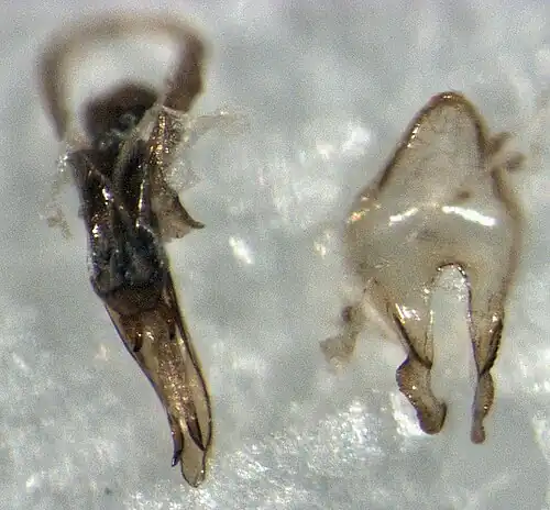 Contacyphon variegatus (aedeagus), see fig. 9 (G, H) in Nyholm (2000)