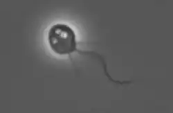 Monosiga barevicollis, as seen in phase contrast microscopy.
