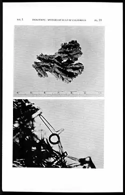 - Dickinson, M.G. 1945. Sponges of the Gulf of California. Allan Hancock Pacific Expeditions. Los Angeles, Calif.: University of Southern California Press. 11(1): 1–55; pls. 1–97. Online BHL Reference page.