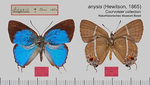 - Iolaus anysis Hewitson, 1865: 42, pl. 29, figs 17, 18.