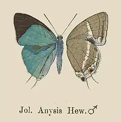 - Jolaus anysis Hewitson; Staudinger, 1888: 275, pl. 95.