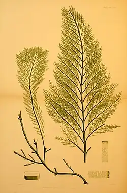 - Hooker, J.D. & Harvey, W.H. 1845. Algae antarcticae, being characters and descriptions of the hitherto unpublished species of algae, discovered in Lord Auckland's Group, Campbell's Island, Kerguelen's Land, Falkland Islands, Cape Horn and other southern circumpolar regions, during the voyage of H.M. discovery ships "Erebus" and "Terror". The London Journal of Botany 4: 249–276, 293-298. BHL Reference page. : 249